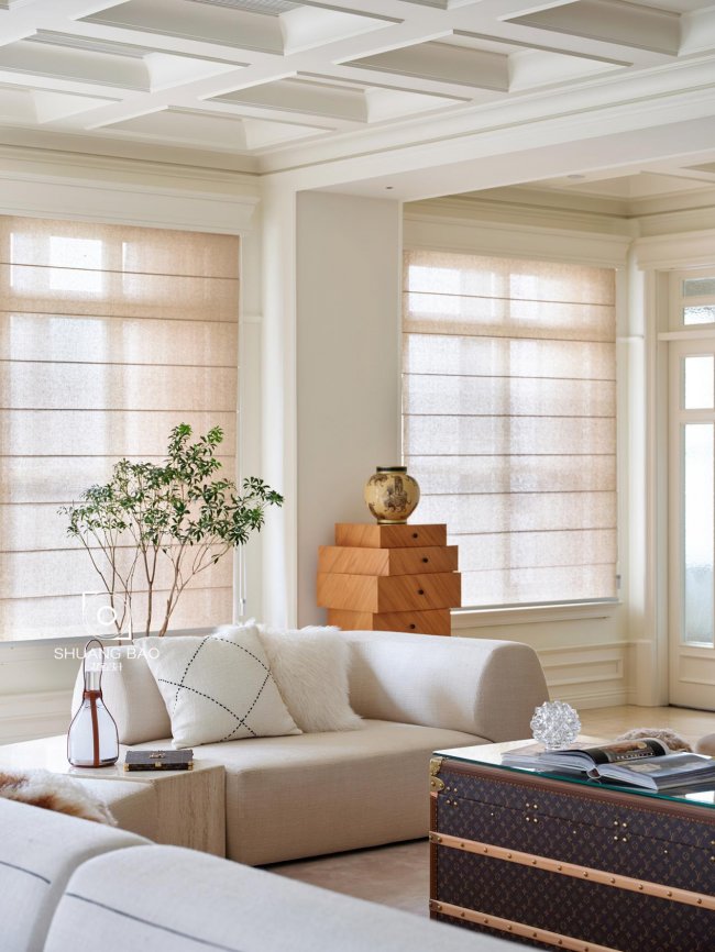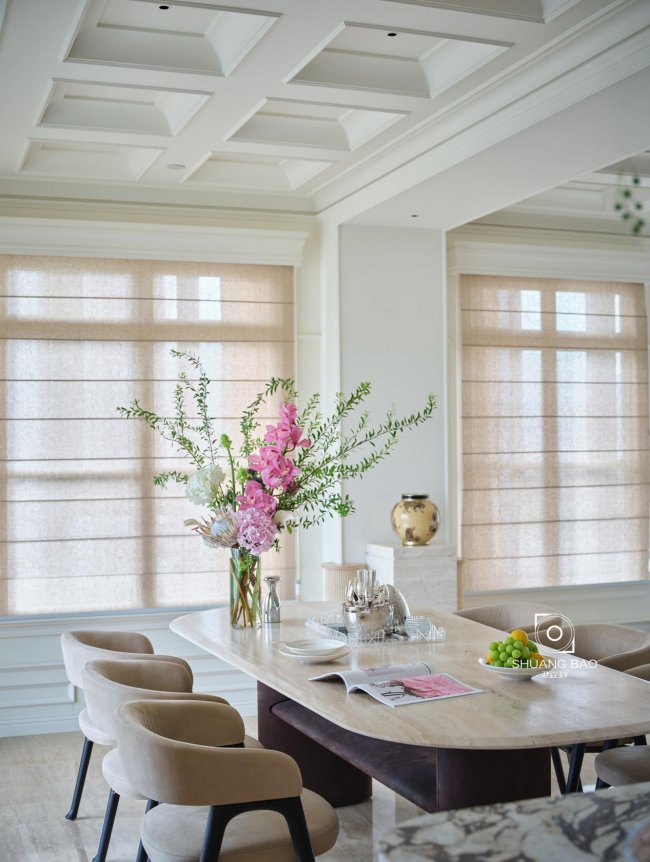 一卷罗马帘为引入室内的光线镀上一层朦胧与温柔。设计师将门窗艺术创作融入空间的组成和人与宠物的情感之中,打造真实客观、艺术与实用兼具的情景空间。