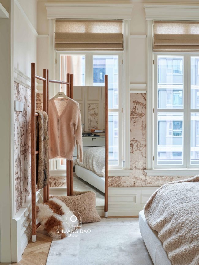 这里是女主的玩偶屋,井然有序的衣帽间,是女主人自信与美好的安放地,诠释着她的生活品味与态度。