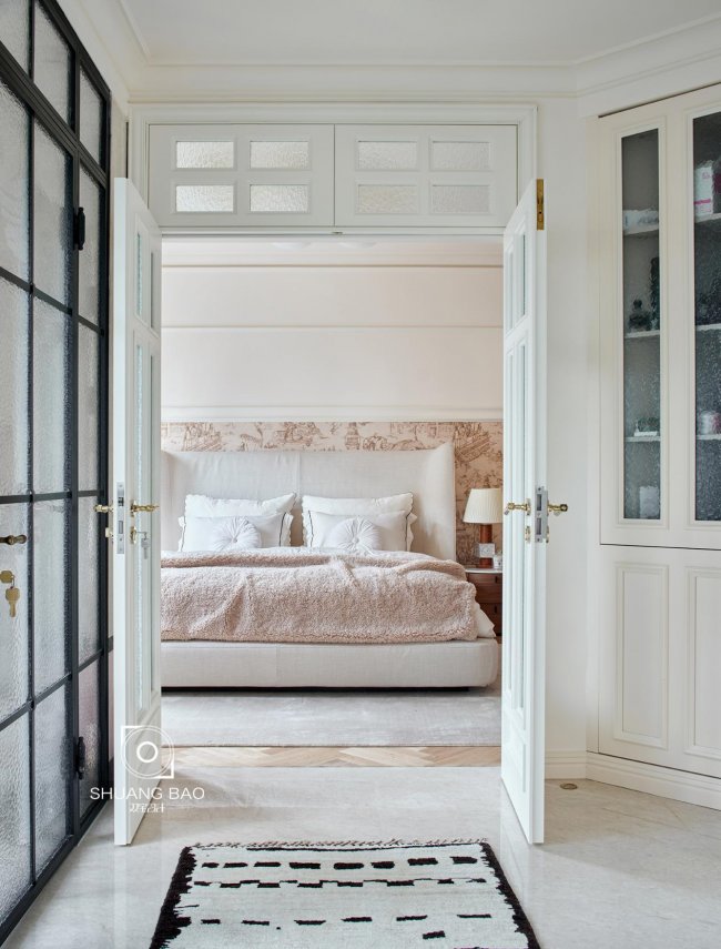 推开水纹玻璃的法式双开门,优雅的格调带着真实原味的典雅,当屋主进入私人空间的那一刻,外部的嘈杂即被隔绝在外,本能地沉静舒适下来。