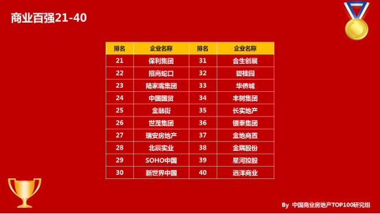 在现场发布的商业地产百强排名中,万达集团、红星地产、华润置地位居三甲,凯德集团、万科印力、新城商业、恒隆地产、大悦城、新鸿基、龙湖地产亦在前十之列。同时,华润置地、红星地产、恒隆地产的商业地产品牌价值受到广泛青睐,位居商业地产品牌榜前三。此外,在优秀产品线子榜单中,万达广场、大悦城、万象城占据前三,龙湖天街、凯德广场、等知名商业产品线亦位列其中。上海上生·新所在优秀城市更新项目中颇受认可。在十大优秀商业新地标评选中,上海国际金融中心、北京三里屯太古里、深圳华润万象城名列前三。万达和华润分别领衔民企和国企商业企业,新城在美好生活商业表现良好,凯德在雅致高端生活商业一枝独秀,首次双轮驱动表现测评万科印力、华润、龙湖、新城、中海表现积极。